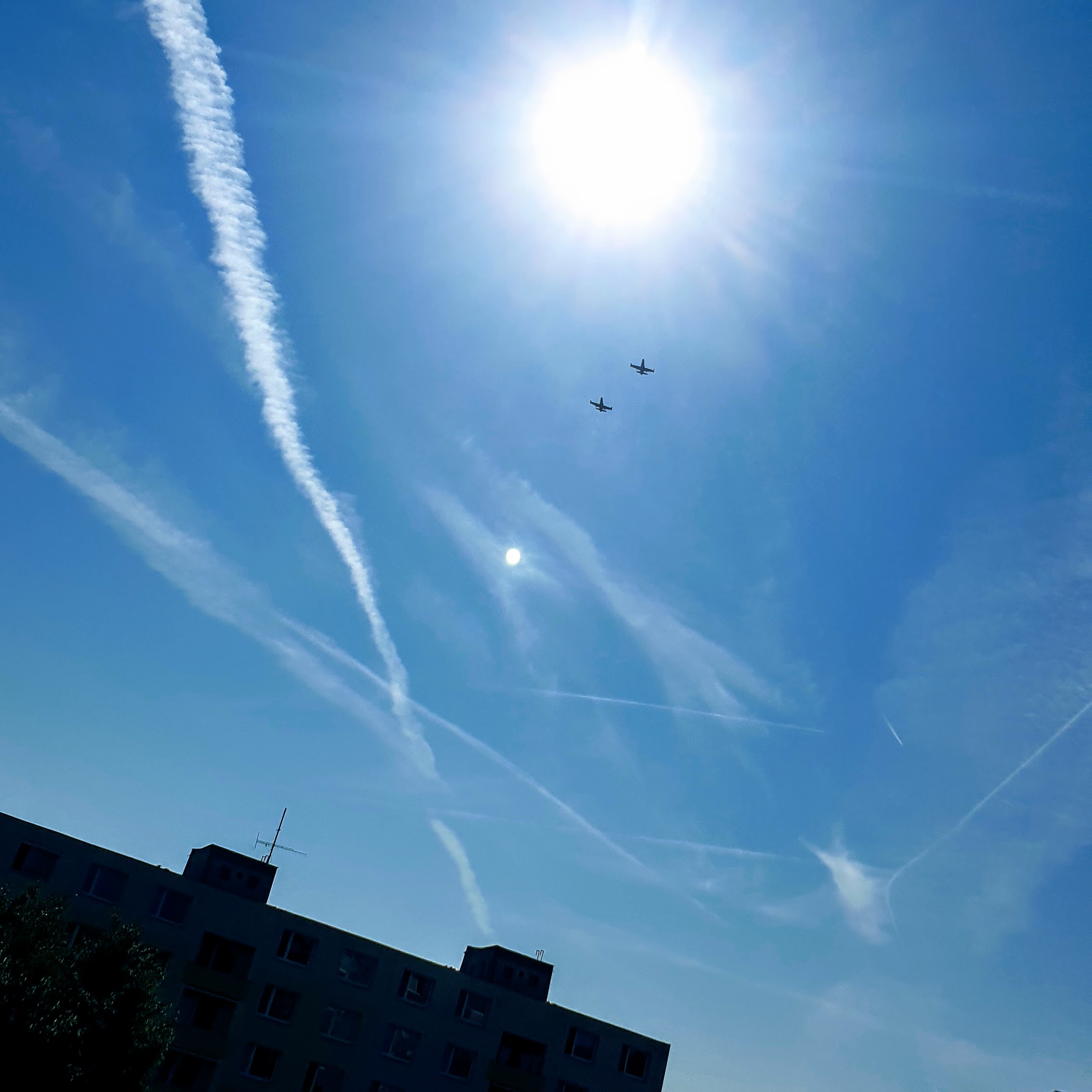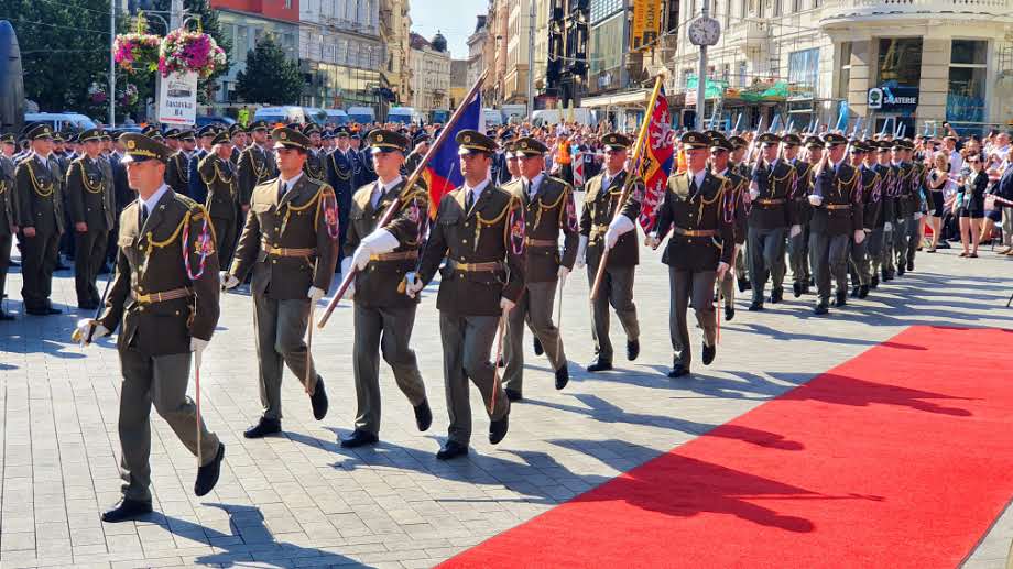 Slavnostní vyřazování, které dnes probíhá na náměstí Svobody bylo k vidění i u nás ;) , kdy na závěr ceremoniálu proletěla formace stíhaček i nad Kohoutovicemi ✈️ ✈️✈️