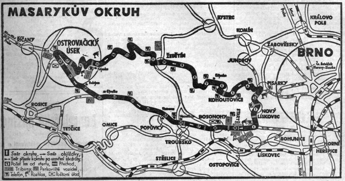 Potkáme se na parkovišti před Myslivnou, odkud projedeme část bývalého Masarykova okruhu (GRAND PRIX), včetně spanilé jízdy Kohoutovicemi.